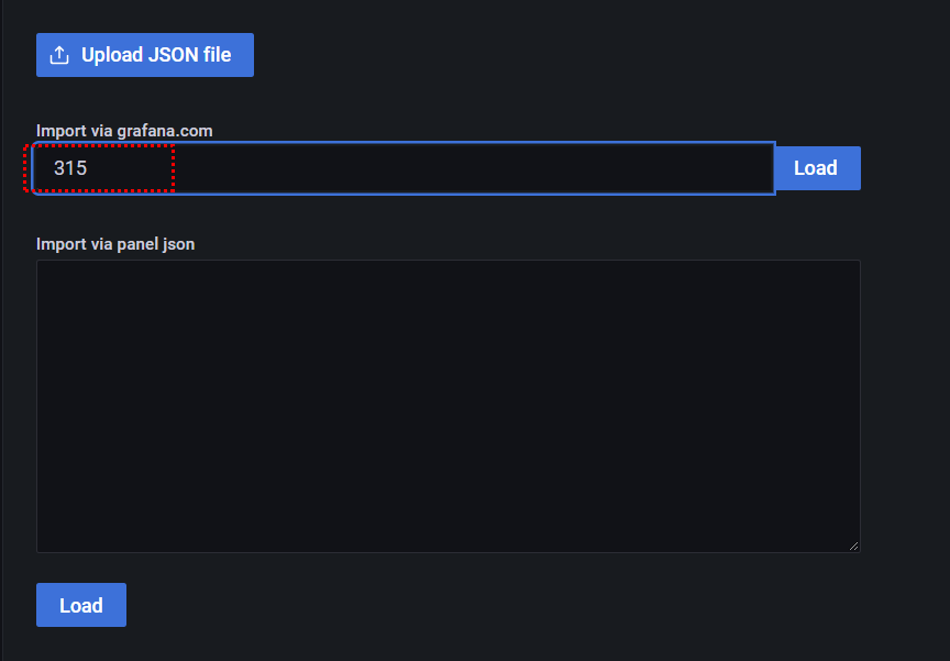 대시보드를 구성하기 위해 +버튼 (Create)의 Import로 들어간다. Import는 외부에 사용자들이 미리구성해놓은 좋은 다양한 대시보드를 간단히 다운로드 받아서 설정할 수 있다.