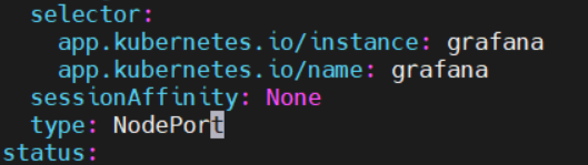 service/grafana NodePort 10.96.59.101 <none> 80:31910/TCP 9s