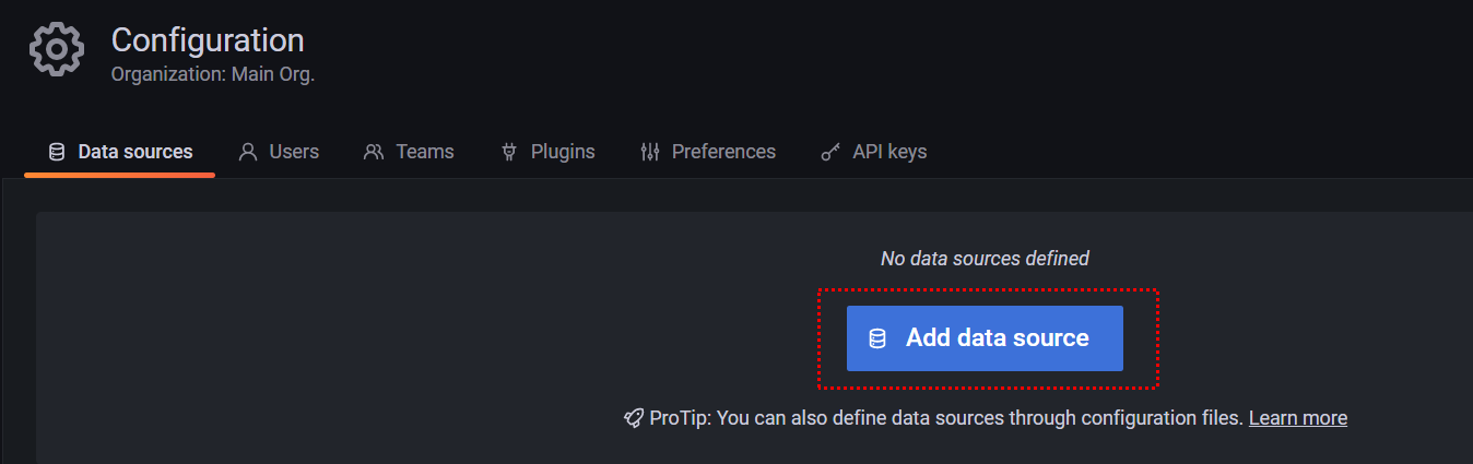 프로메테우스 데이터를 그라파나로 가져오기 > Configuration의 Data sources로 접근한다.