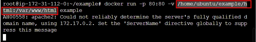 - docker run -p 81:80 -v /home/ubuntu/example/html:/var/www/html example