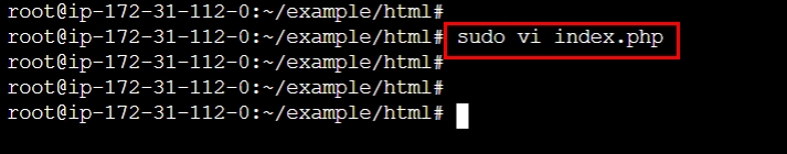 - 해경 경로에서 sudo vi index.php를 입력하여 간단한 php 소스코드를 작성하자.