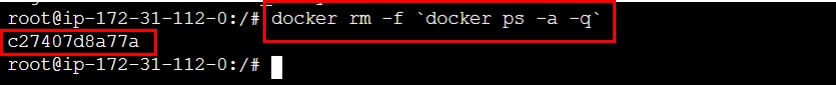 - docker rm -f `docker ps -a -q` 를 입력하여 현재 실행중인 도커 이미지를 모두 삭제한다.