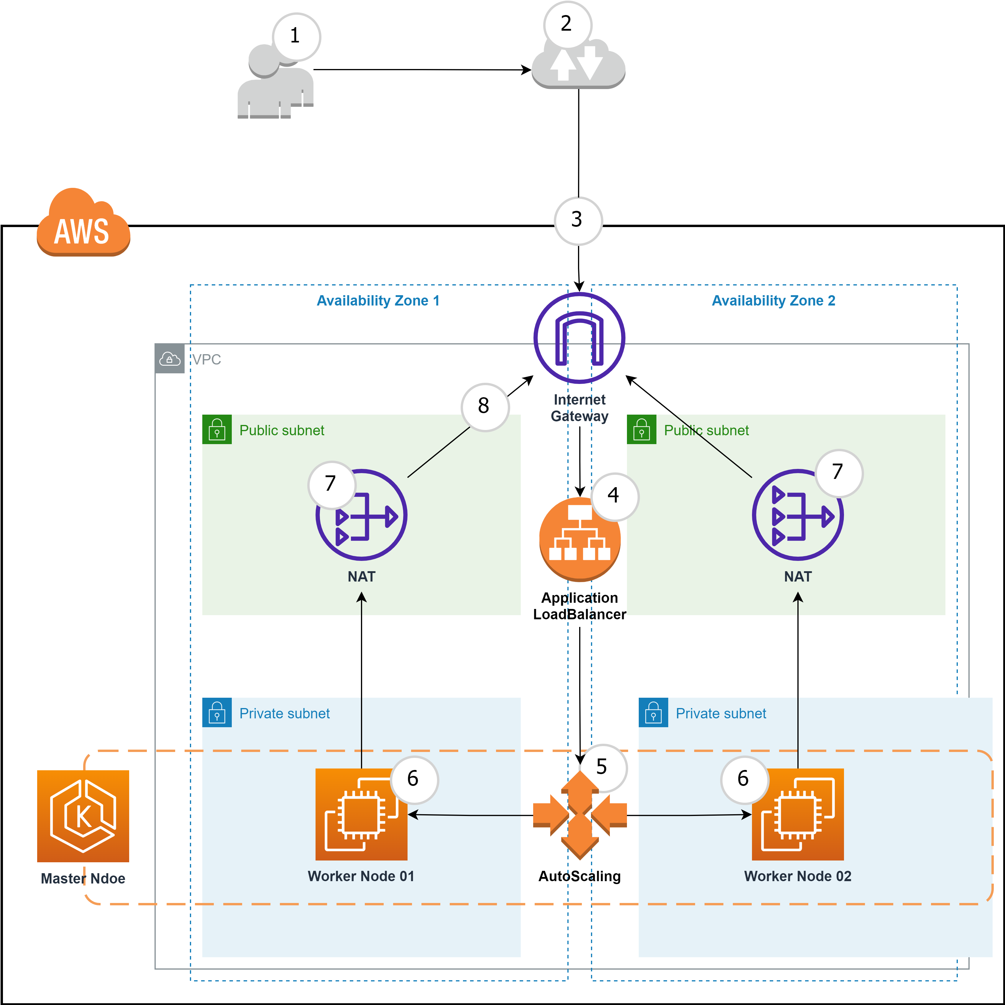 ⑦ 연산을 마친 Worker Node는 요청한 사용자에게 원하는 정보를 제공하기 위해 NAT를 통해 트래픽을 외부로 전송 한다.