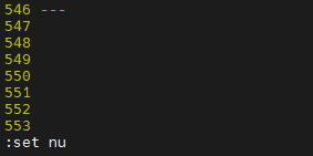 - set nu 를 아래와 같이 입력하여 각 줄의 번호를 표시 한다.