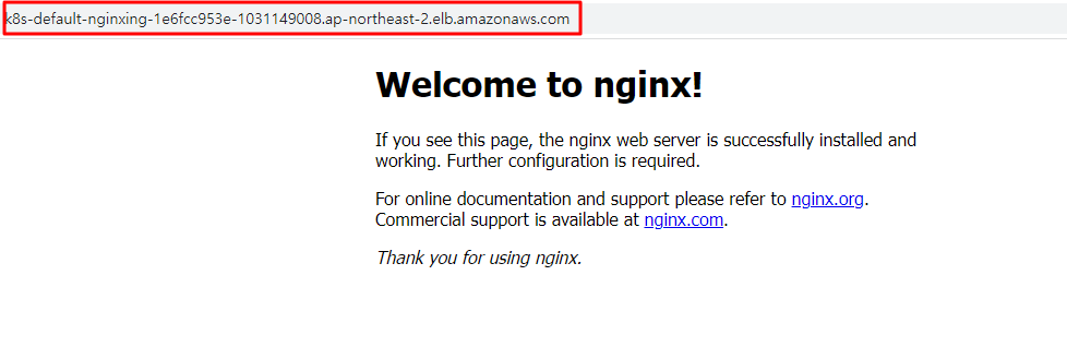 - Address 주소를 복사하여 웹페이지에 붙여넣으면, 아래와 같이 nginx 화면을 볼 수 있다.