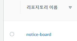 콘솔화면, Amazon ECR로 이동하여 리포지토리 생성을 클릭 → notice-board 라는 레파지토리를 생성 한다.