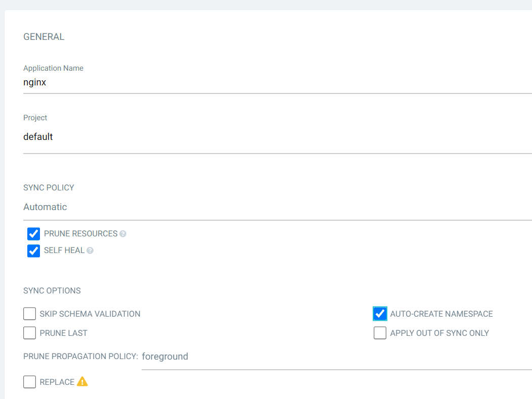 - Application Name : nginx를 배포할거니까 간단하게 nginx라고 지정