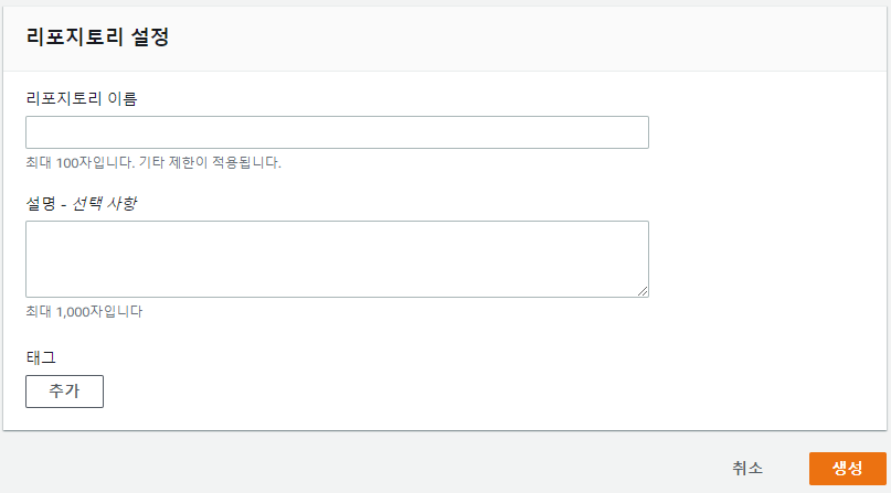 # AWS CodeCommit 서비스에서 Repository를 생성 한다.