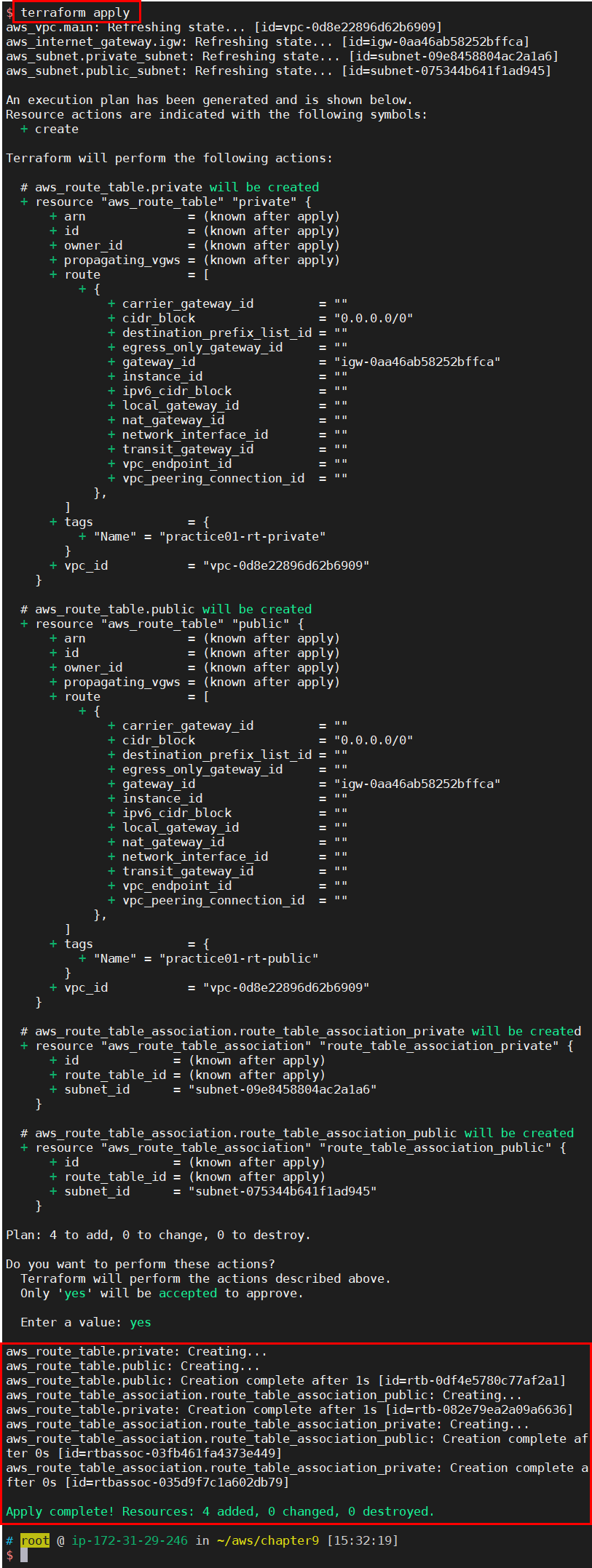 - terraform apply를 입력하여 실제 인프라에 생성하자.