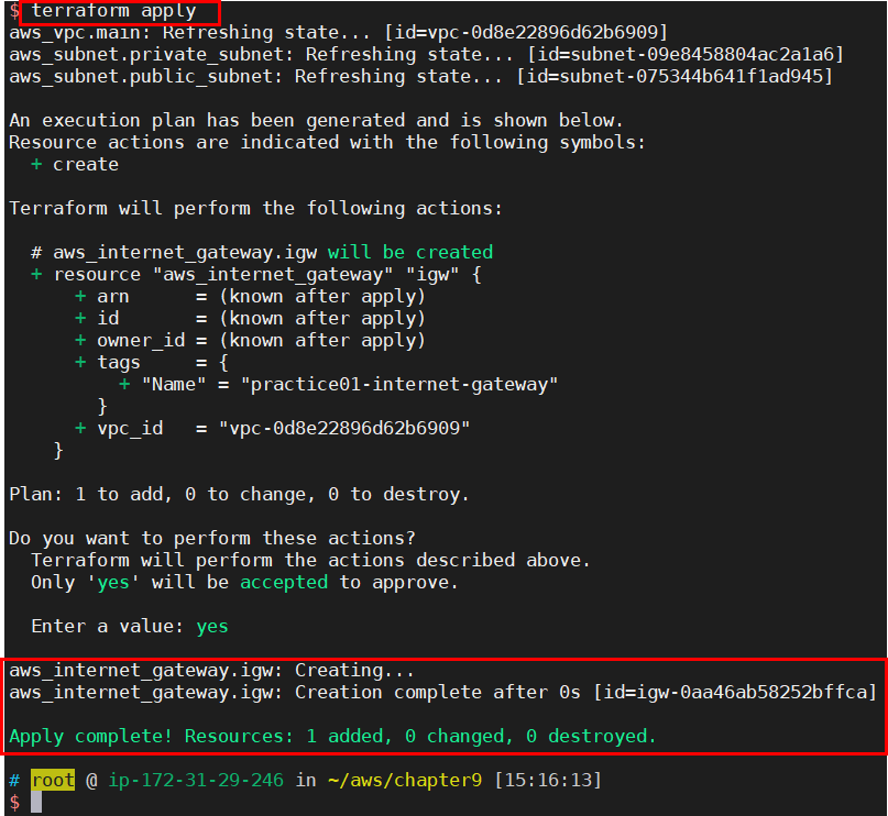 자 그럼 이제 인터넷 게이트웨이를 테라폼을 통해 생성해 보자.