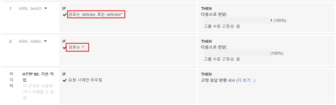 예를 들어 설명하면, 스프링부트의 BoardController가 존재하고, 해당 컨트롤러의 api 주소를 아래와 같이 @GetMapping으로 /articles라는 api주소를 설정 했을때, ingress에서 해당 api주소로 아래와 같이 설정을 하면 ALB의 리스너 정책에 해당 정보를 참고하여 맵핑 후 생성한다. (리스너 정보는 아래에 있다.)